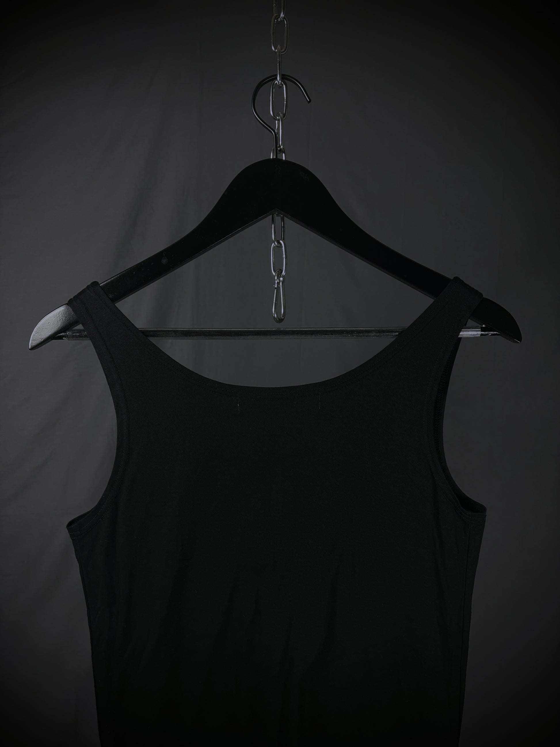 This tank top from the Japanese brand 20471120 originates from the mainline couture collection of the mid-1990s. The chest features a distinctive X-stitch construction that gathers and slightly scrunches the fabric. The hem is finished with ribbon-like extensions, allowing for versatile styling—worn loose, tied into bows, or wrapped around the waist. Crafted from 100% cotton and made in Japan.