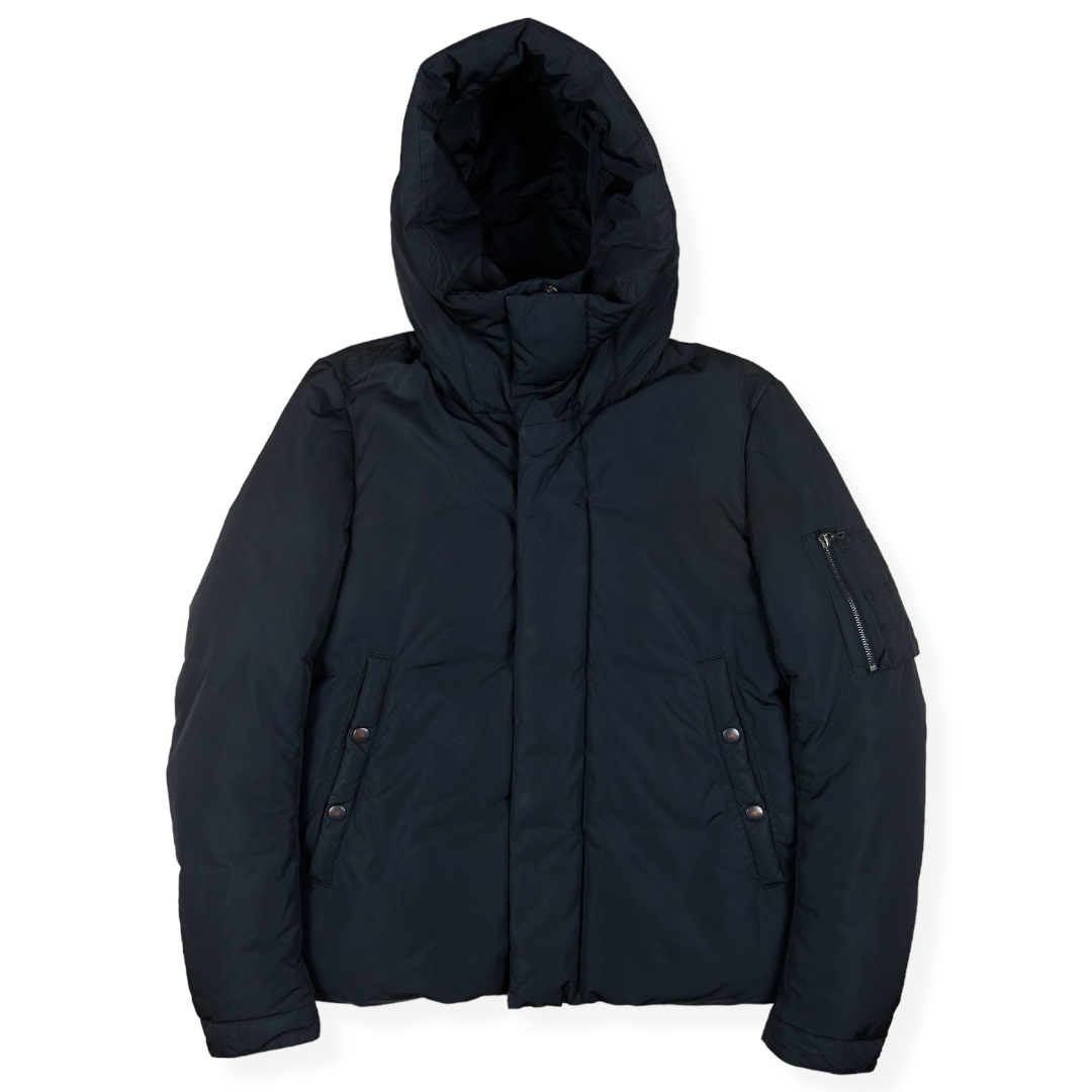 This jacket from the Japanese brand Attachment features an elongated eskimo-style hood, dual zippers with button clasp closures, a military-inspired arm zip pocket with pencil pocket, two deep outer pockets, and one interior pocket. With its moderately down-filled insulate and matte finish, this jacket should keep you cozy and protected from the elements during any occasion.