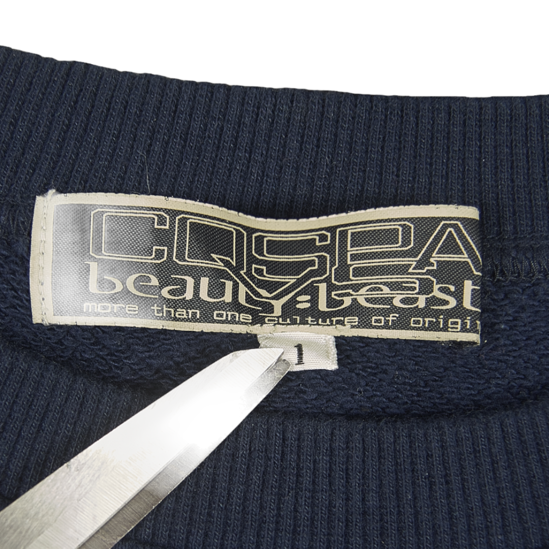 This crewneck sweatshirt from Beauty:Beast’s Autumn/Winter 1998 collection in collaboration with Cospa, a popular anime apparel label, pays homage to the iconic character Sirene from the highly-popular Devilman. Featuring “Killer Icon Japan”, this piece embodies the character's influence and cultural importance since first appearing in the 1972 Devilman manga, later adapted into various anime series. Coming to life through detailed embroidery, this garment from one of the most sought-after Beauty:Beast collections is rich in history and truly one-of-a-kind!