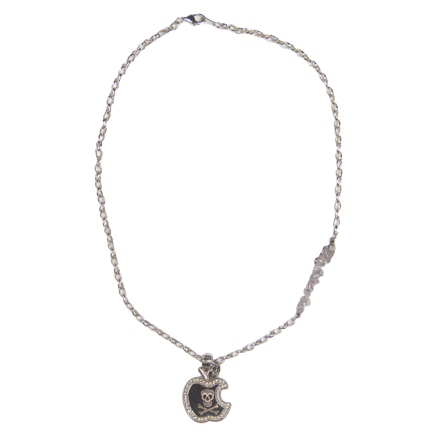 Here we have an eye-catching necklace from the Japanese brand Hysteric Glamour. This piece features an array of unique details such as the pendants glossy enamel center boasting a skull and cross bone motif surrounded by Cubic Zirconia stones throughout.