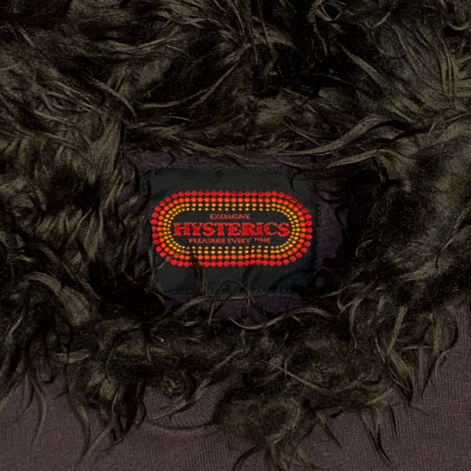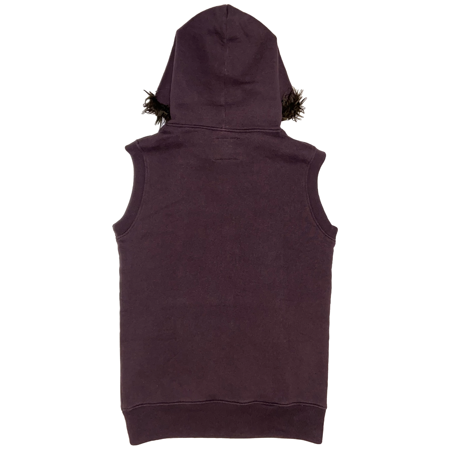 Here we have an eye-catching hoodie from the cult Japanese brand Hysteric Glamour. This dark purple sleeveless piece features an ''Interstellar Overdrive'' script motif on the front of the garment and a super soft fur-lined hood.