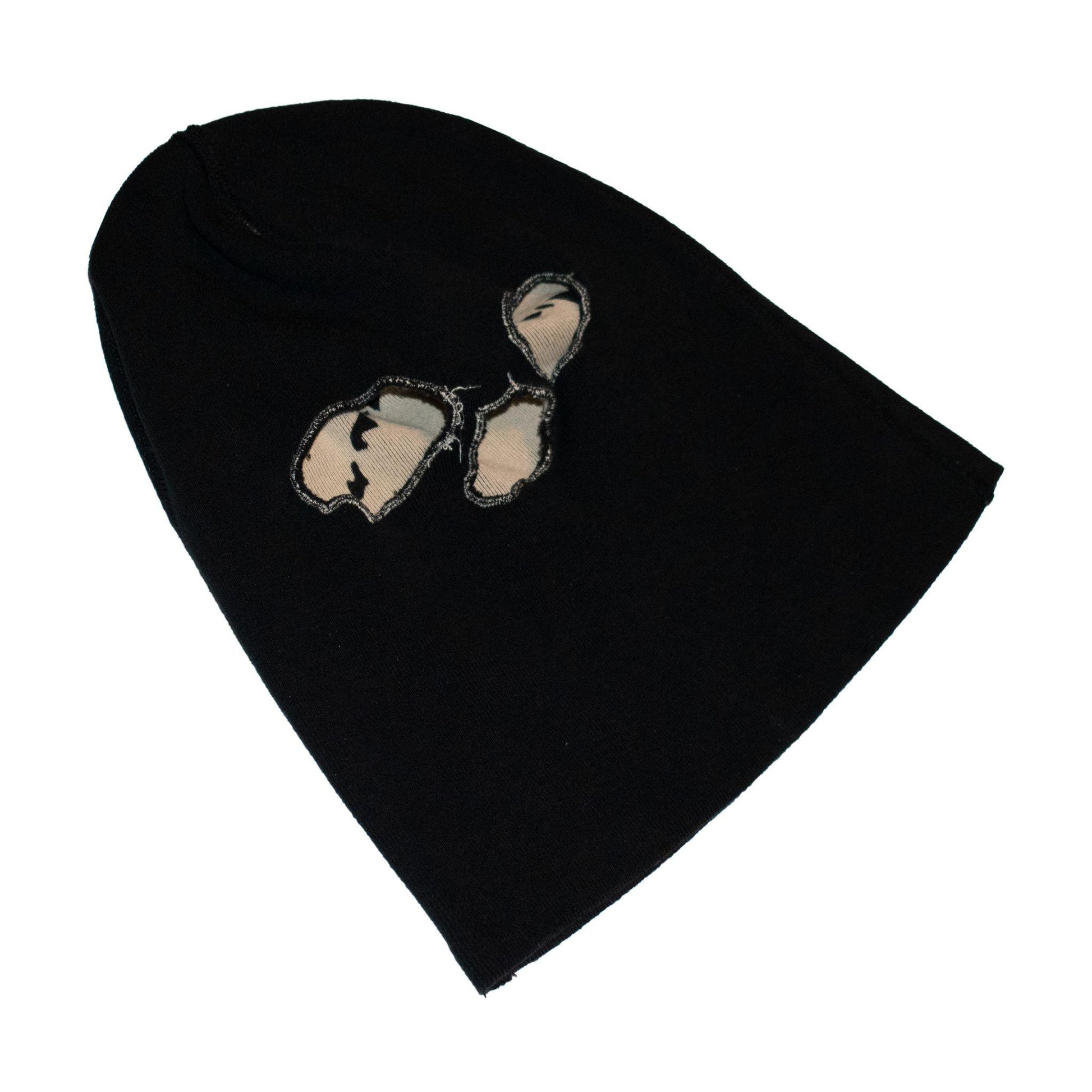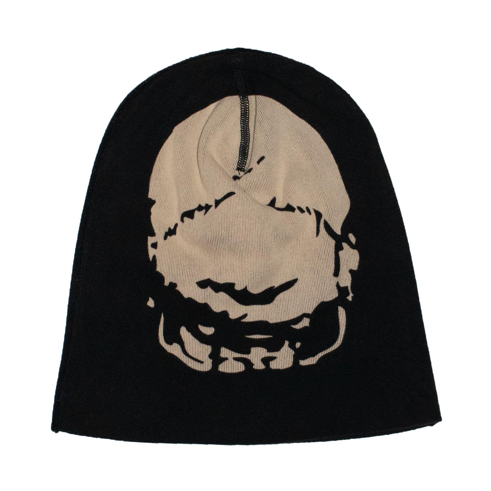 Here we have a beanie from Hysteric Glamour that depicts a skull motif along the front and back of the garment. What makes this piece so unique is its dual design of a conventional folded beanie or ski mask that complements the skull concept with cutouts of the eyes and nose.