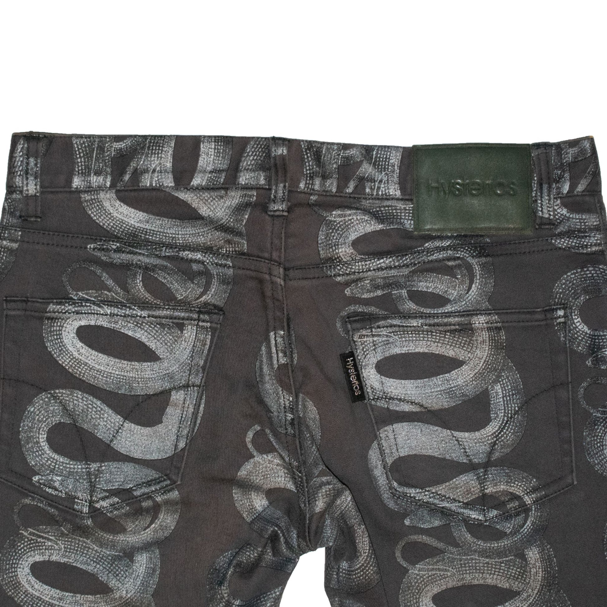 Here we have a pair of HG snake denim in the charcoal grey colorway - This is one of the older & rare colorways. Constructed with 100% Japanese denim, this pair of jeans is built to last and stands out from the crowd – A staple piece for Japanese/Archive collectors.
