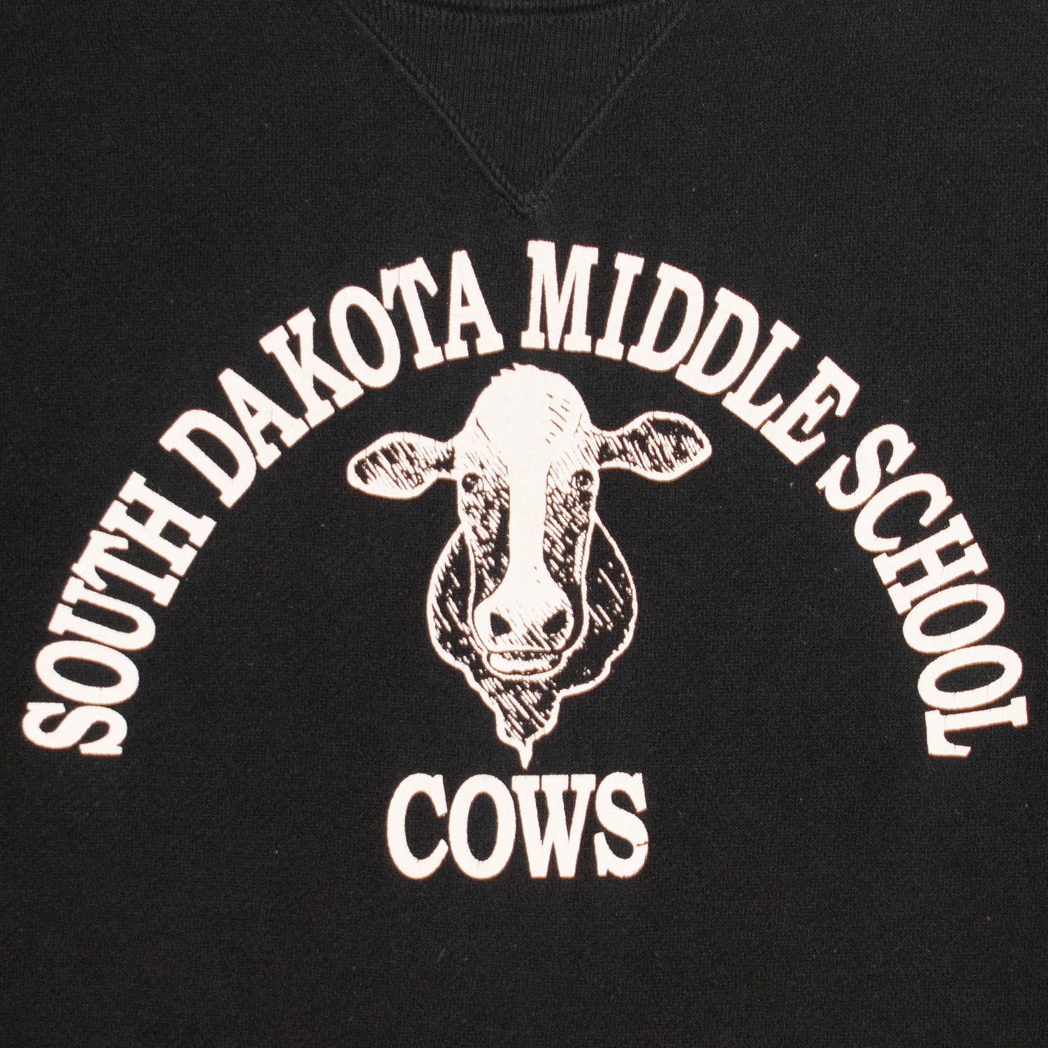 Here we have a crewneck sweatshirt from this collection that features a “SOUTH DAKOTA MIDDLE SCHOOL COWS” graphic printed on the chest.