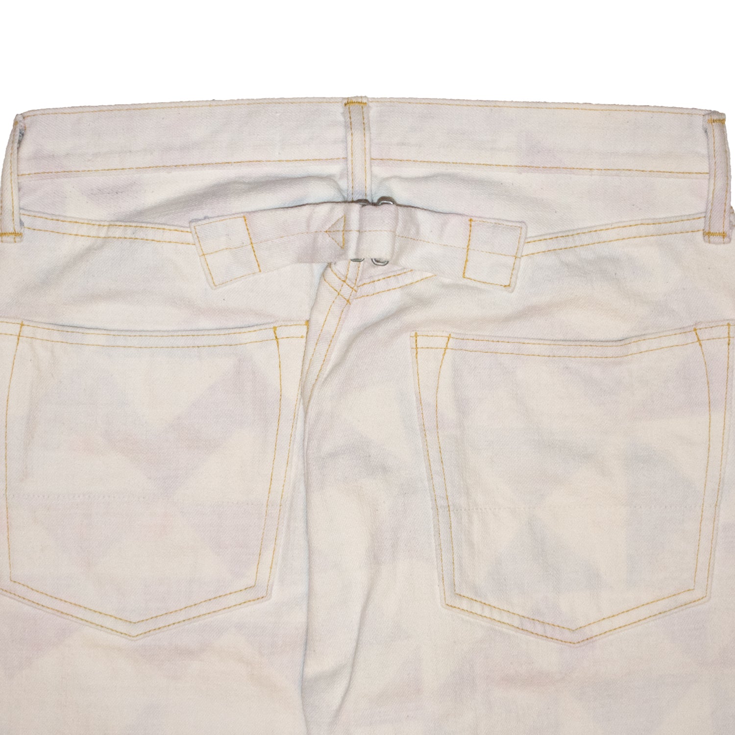 Here we have a unique pair of jeans from the Japanese brand Kapital. This piece features the recognizable Argyle pattern tucked away within the interior lining of the garment – The Argyle pattern was originally derived from the tartan of Clan Campbell of Argyll in western Scotland. The design consists of a distinctive overlapped diamond motif which adds a sense of three-dimensionality, movement, and texture. This 5-pocket denim is constructed with high-quality 100% cotton equipped with contrast yellow stitching, belt loops, button fly, and an adjustable waist clasp. This piece from Kapital is yet another example of how the brand pulls classic designs from around the world and adds their own unique twist, creating timeless garments of the highest quality.