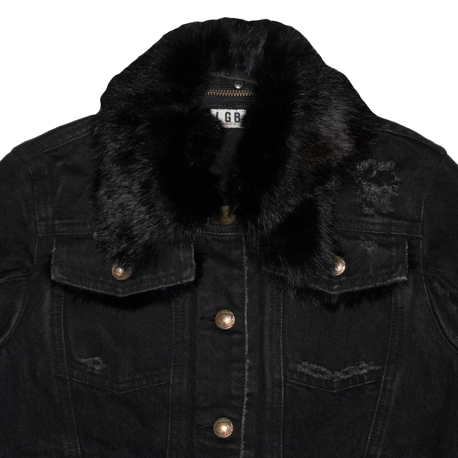 Here we have an incredible denim jacket from the Japanese brand L.G.B. This piece features a variety of unique detailing such as a removable faux fur collar and other traces of faux fur throughout the garment. The jacket has been hand-distressed throughout and features L.G.B. branded buttons and a slim fit. This piece is the epitome of the Rockstar aesthetic envisioned by Nobuhiko Satoh.