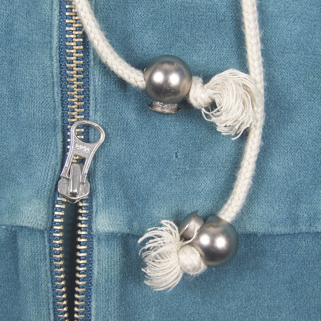 Inspired by warm-up hoodies boxers would wear before a fight, this fitted zip-up hoodie from the Japanese brand L.G.B features a soft cotton/polyester velour material accompanied by elongated ‘taped’ detailing along both the arms and hood. Equipped with heavy-duty YKK hardware and adjustable drawstrings, this piece is high-quality, easy to wear, and bound to stand out.