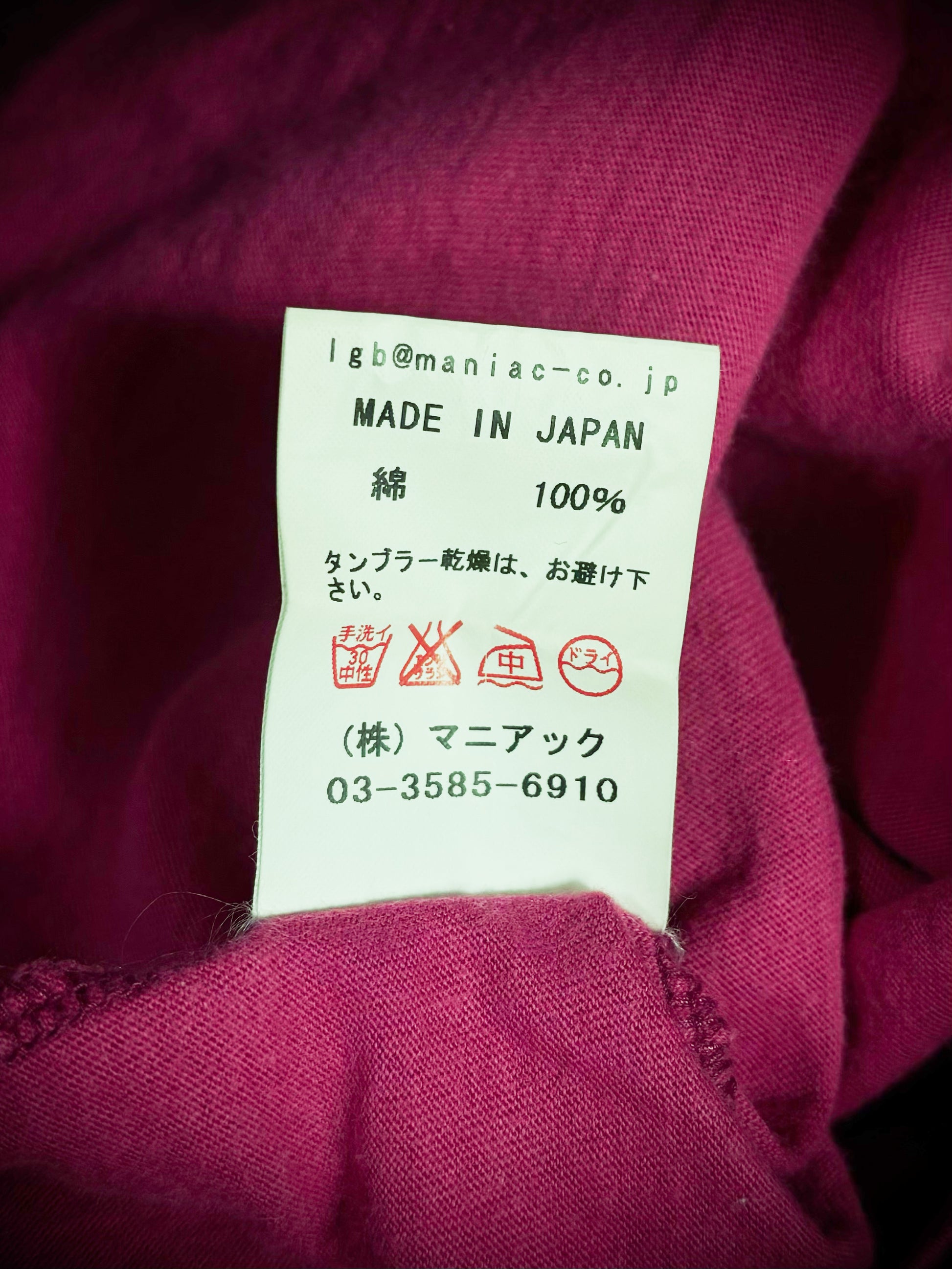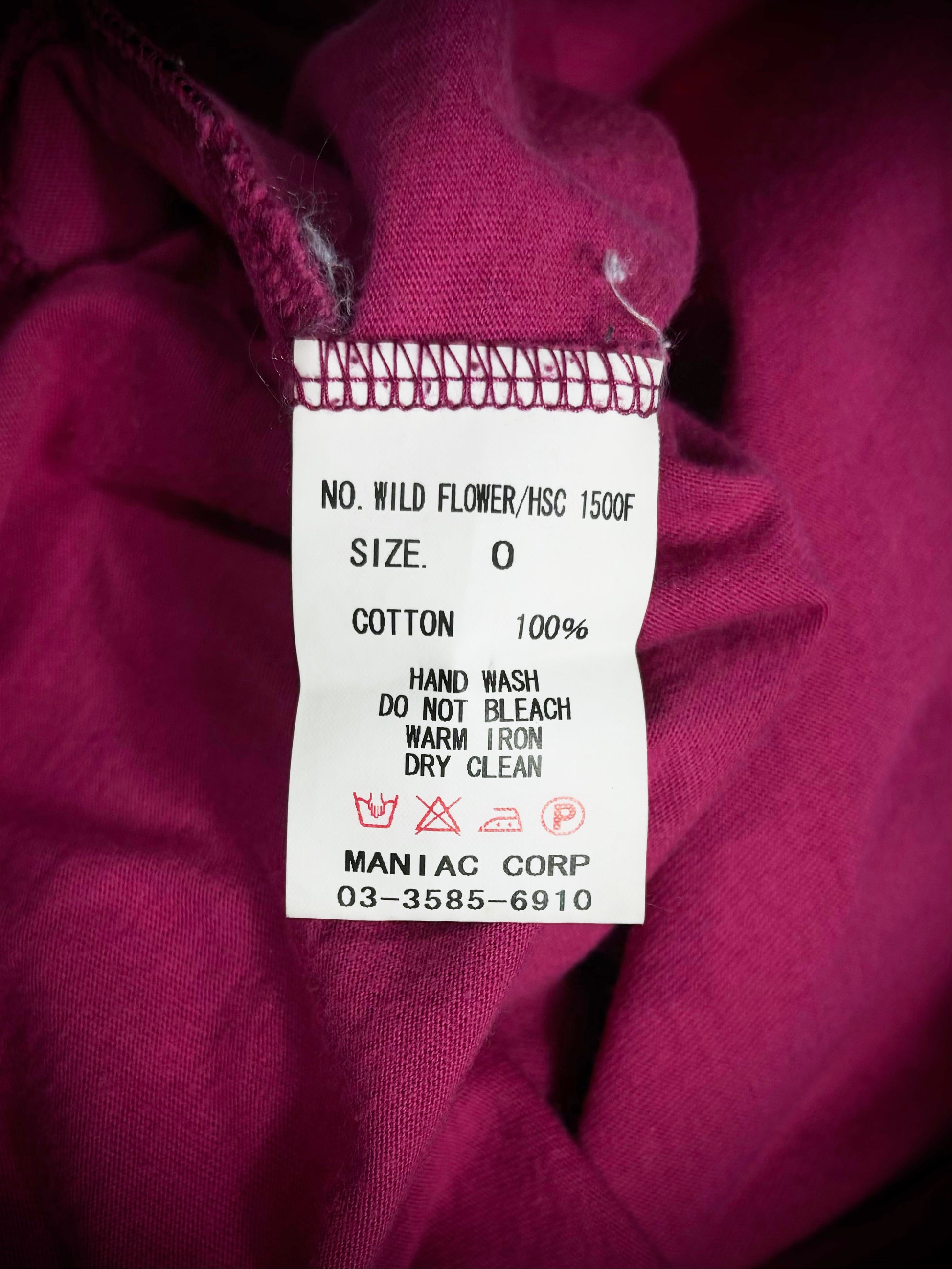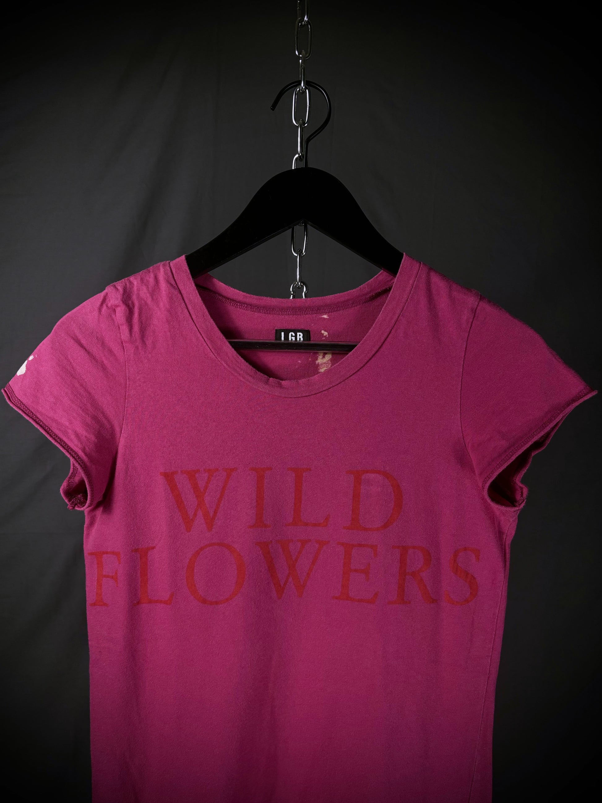 This T-shirt from the Japanese brand L.G.B. (Le Grand Bleu) is cut from soft, worn-in pink cotton. The front features a tonal “WILD FLOWERS” screenprint across the chest, complemented by a bleached, floral-like motif on the back. Additional details include raw-hem sleeves and a tonal L.G.B. label at the lower side seam.