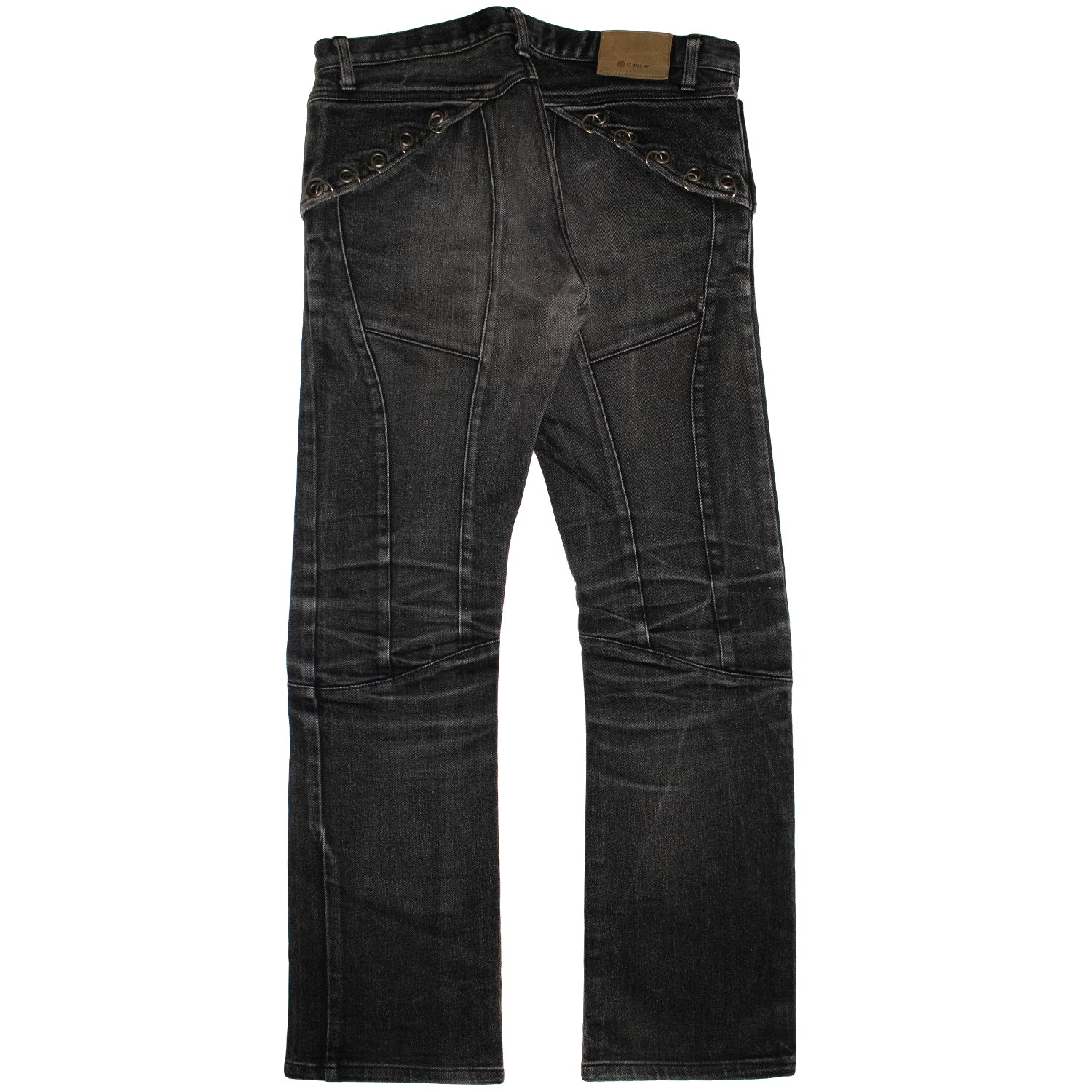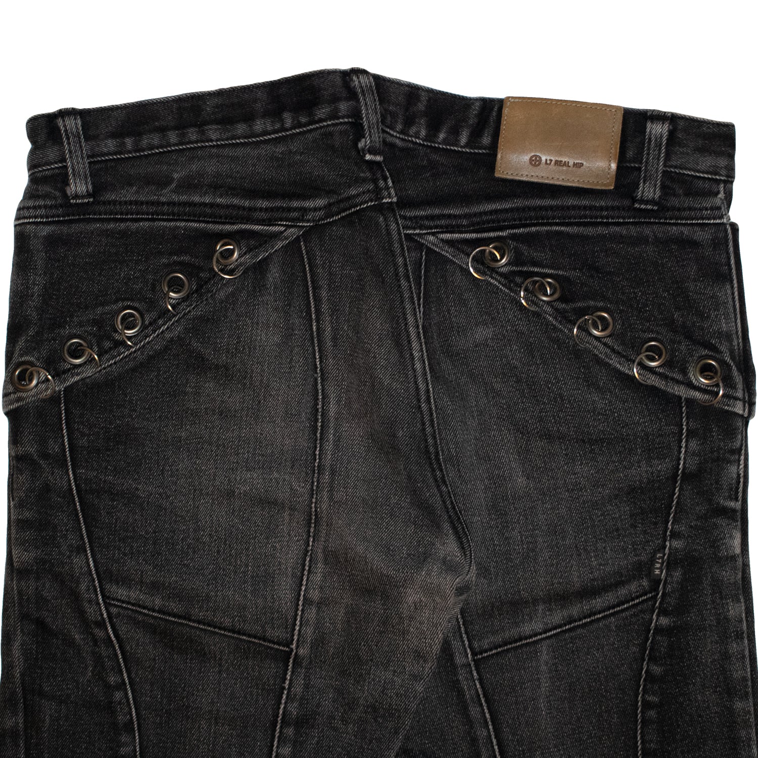 Here we have an eye-catching pair of four-pocket denim from the Japanese brand L7 Real Hip. This piece features an array of unique details such as its elegant fade, symmetrical paneling throughout, and of course, the wrapped ringlet design that elevates the garment into something special. Constructed with high-quality Japanese cotton, this pair of slightly-flared denim by L7 Real Hip is built to last.