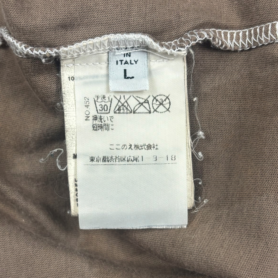 In collaboration with Comme des Garçons’ 10 Corso Como, this tank top from Maison Margiela’s MM6 diffusion line features raw hem detailing throughout and an off-center screen-printed branded logo that faintly glimmers under the right lighting.