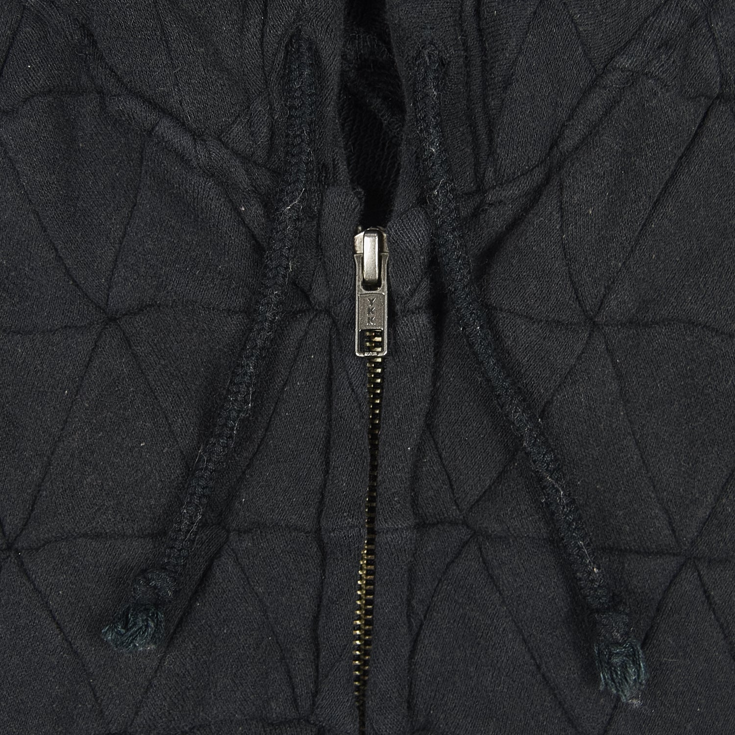 This zip-up hoodie from Phenomenon’s Autumn/Winter 2010 collection features a unique triangular stitch design throughout - one of the label’s most iconic motifs. The garment also includes cutoff sleeves exposing the punk-inspired raw crust seams and hem. Constructed with 100% french terry cotton and YKK hardware, this hoodie from Phenomenon is a standout piece of the highest quality.