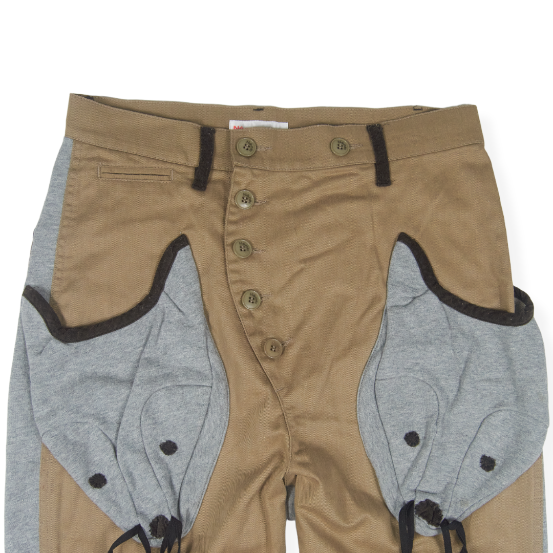 This pair of relax-fit pants from Né-Net’s Autumn/Winter 2012 collection features an eye-catching hybrid design boasting a combination of khaki and sweatpant material with corduroy belt loops. Like many pieces from the label, this garment features animal detailing with its deep pockets in the shape of a Mouse head complemented by tassel whiskers.