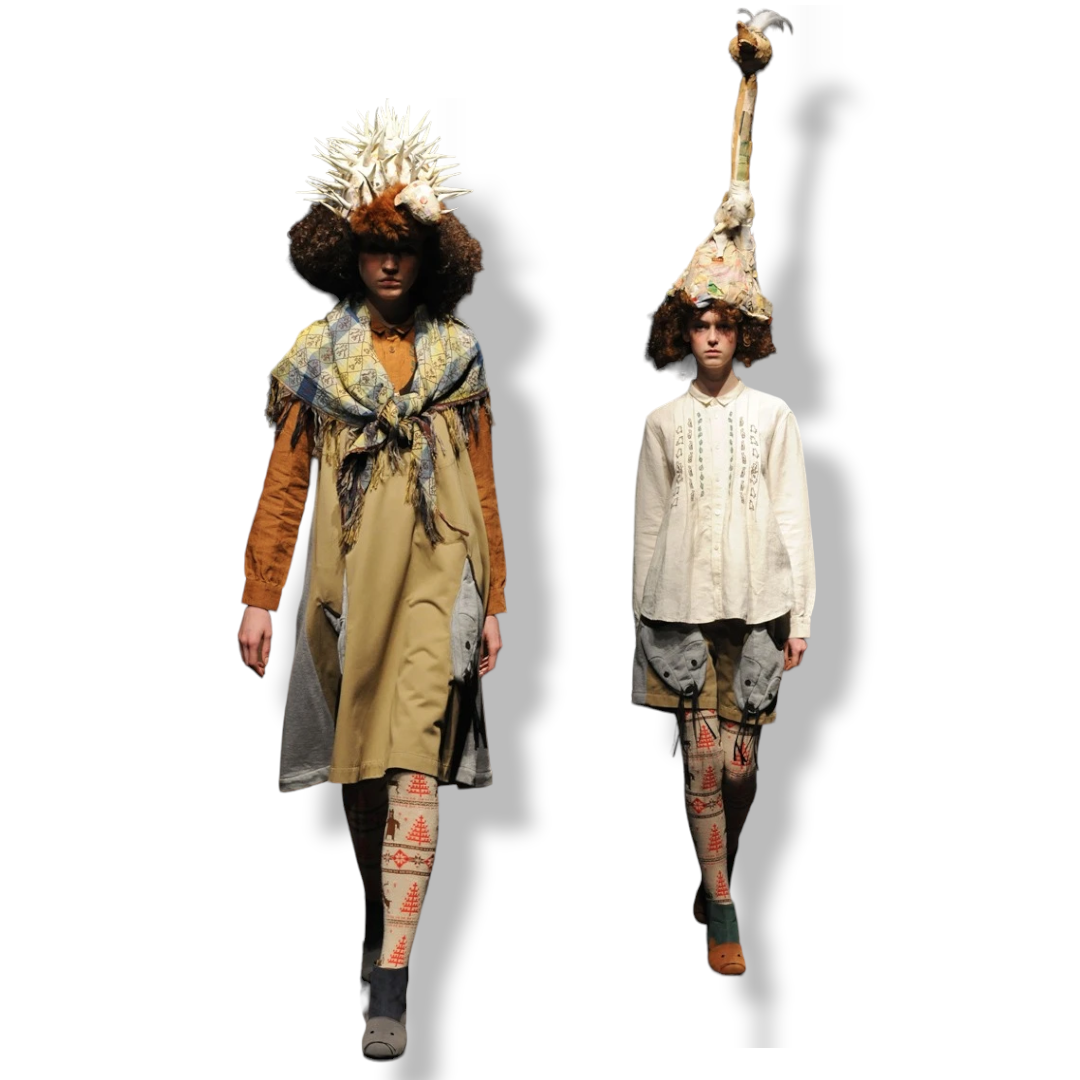 Né-Net’s Autumn/Winter 2012 collection was just as extravagant and over-the-top as always. Designer Kazuaki Takashima produced a collection full of animal motifs, alpine knitwear, and much more. With landscape print dresses, bootlace ties, garments with pockets shaped like mice heads, snake-shaped knit scarves, a dress bearing the head of a toothy bear, and a sweatshirt decorated with a Pinocchio head complete with a 3-D nose, this collection did not hold back; To say there was a lot to take in would be an understatement.