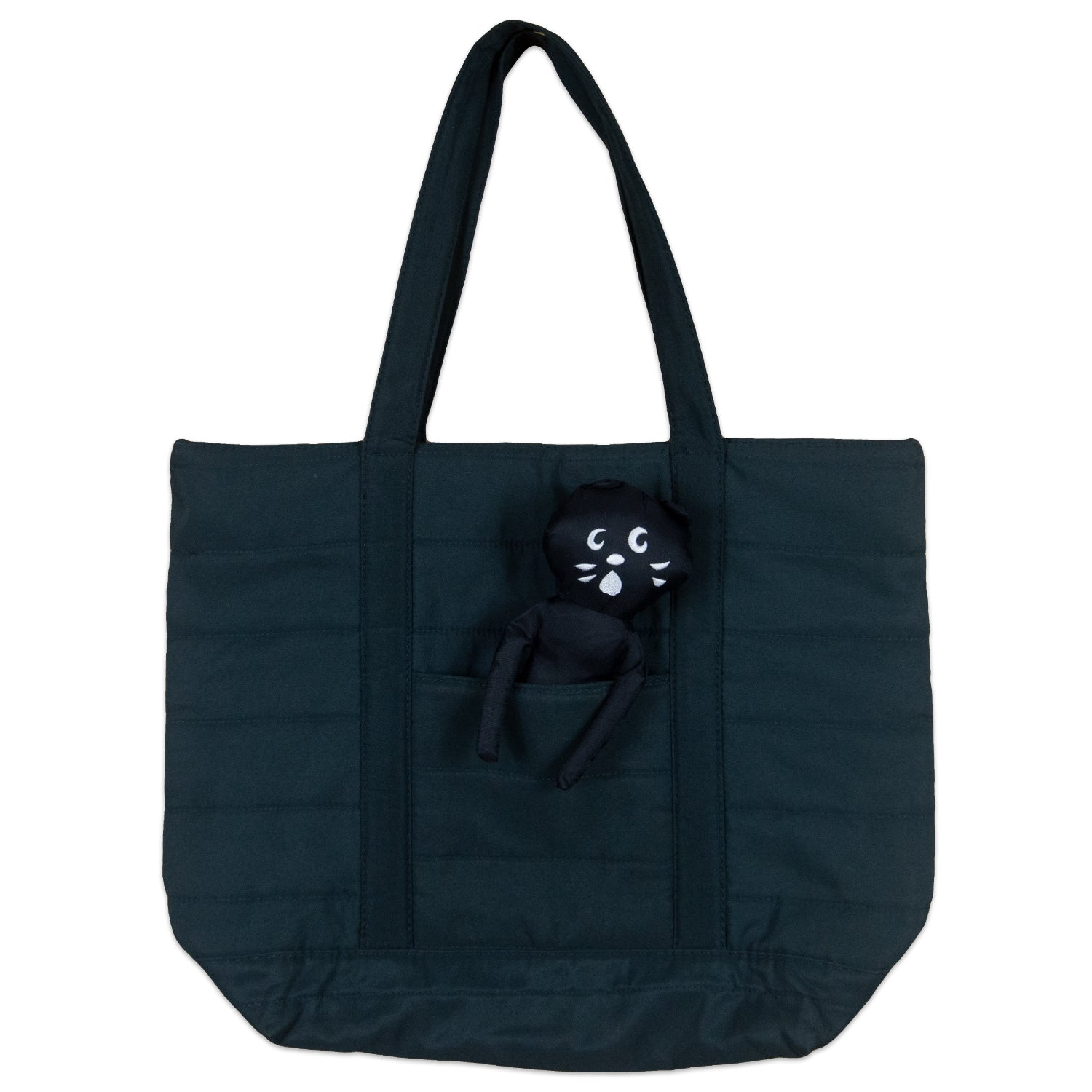 This bag from the Japanese brand Né-Net features the iconic ‘Nya’ cat motif embroidered into a lightly padded, paneled tote bag with a zip closure, singular exterior pocket, and a Nya cat head all-over-print interior.