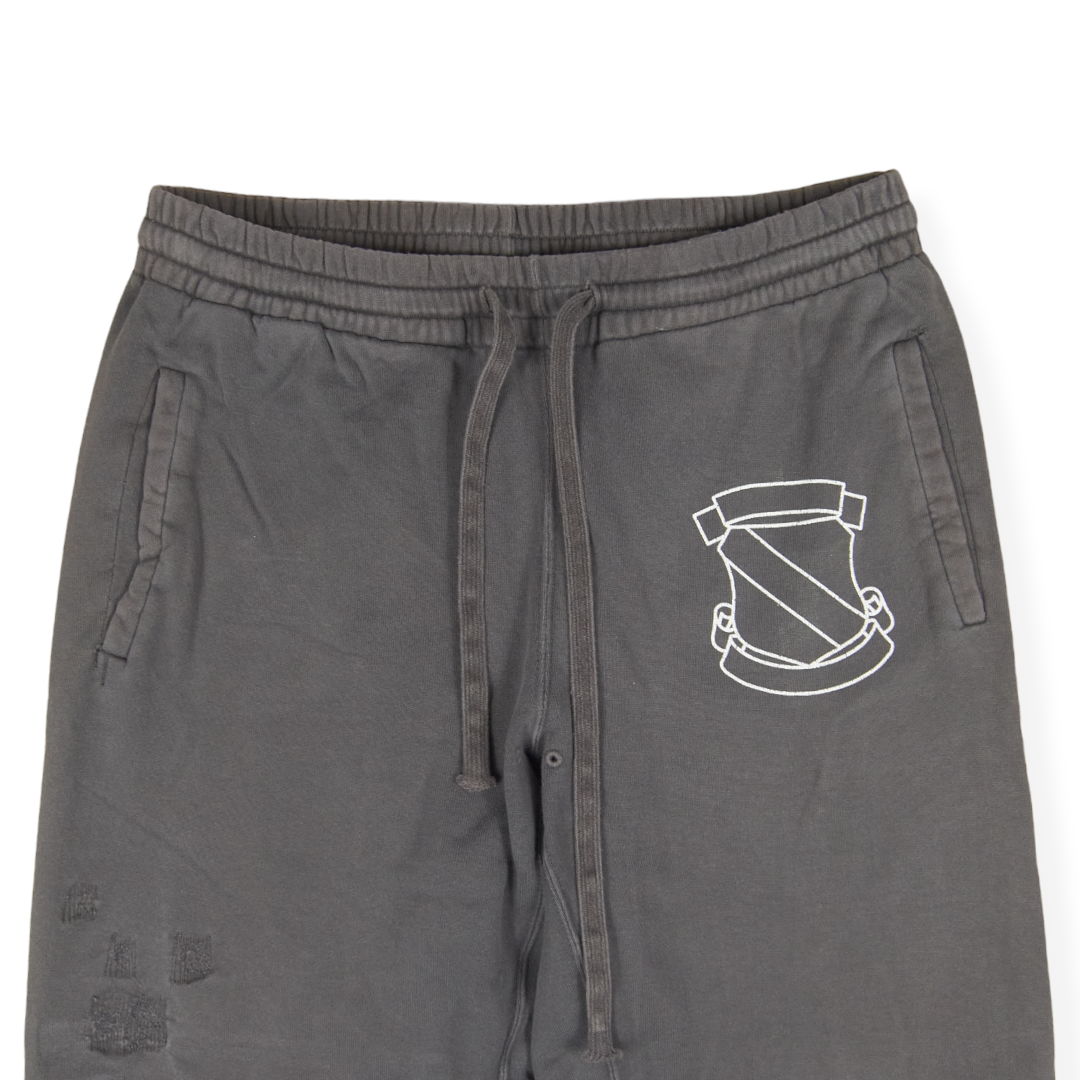 Paying homage to the brand's Autumn/Winter 2001 ‘Standards’ collection, these high-quality 100% Japanese cotton sweatpants feature patched distressing and the iconic shield motif screen-printed atop a faded grey garment.