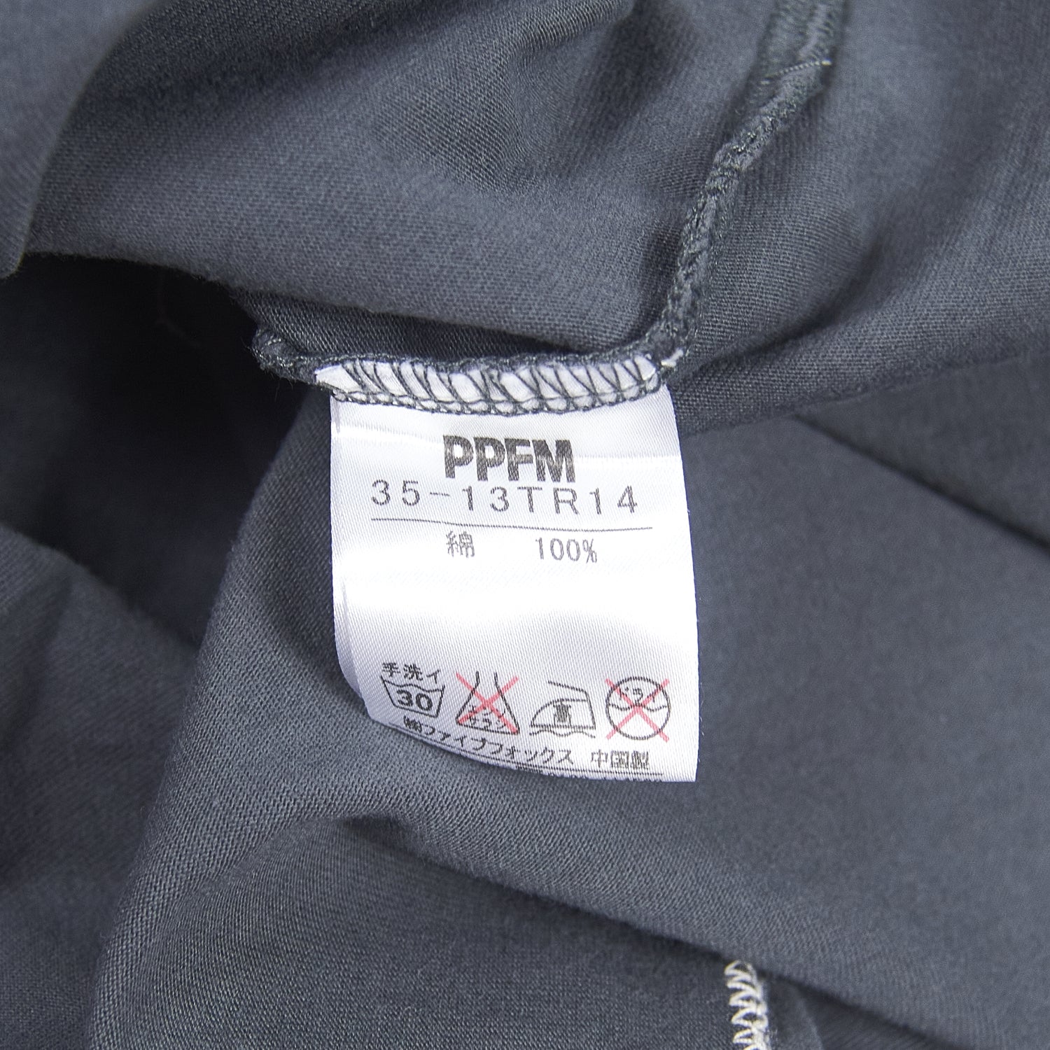 This t-shirt by the Japanese brand PPFM from 2008 features an eye-catching typography motif using patchwork lettering on the front of the garment, screen-printed typography on the back, and contrast stitching throughout.