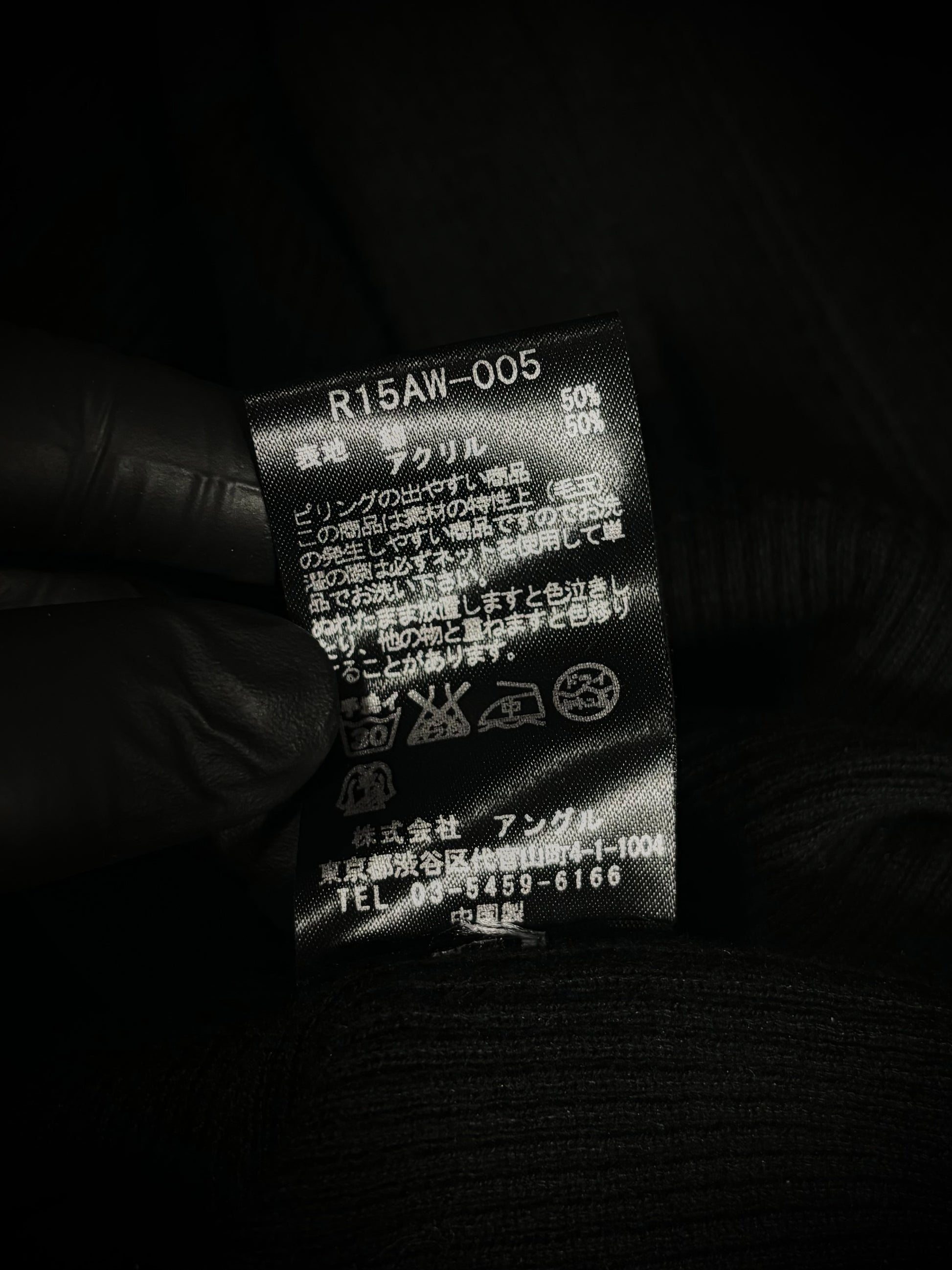 This long sleeve by the Japanese brand RipVanWinkle, from their Fall/Winter 2015 collection, features a slim, fitted silhouette. Crafted from a 50/50 cotton and acrylic blend, the garment is defined by its distinct ribbed-knit texture. A key design element is the horizontal seam detailing across the upper back, providing a subtle structural accent to this timeless, wardrobe staple.