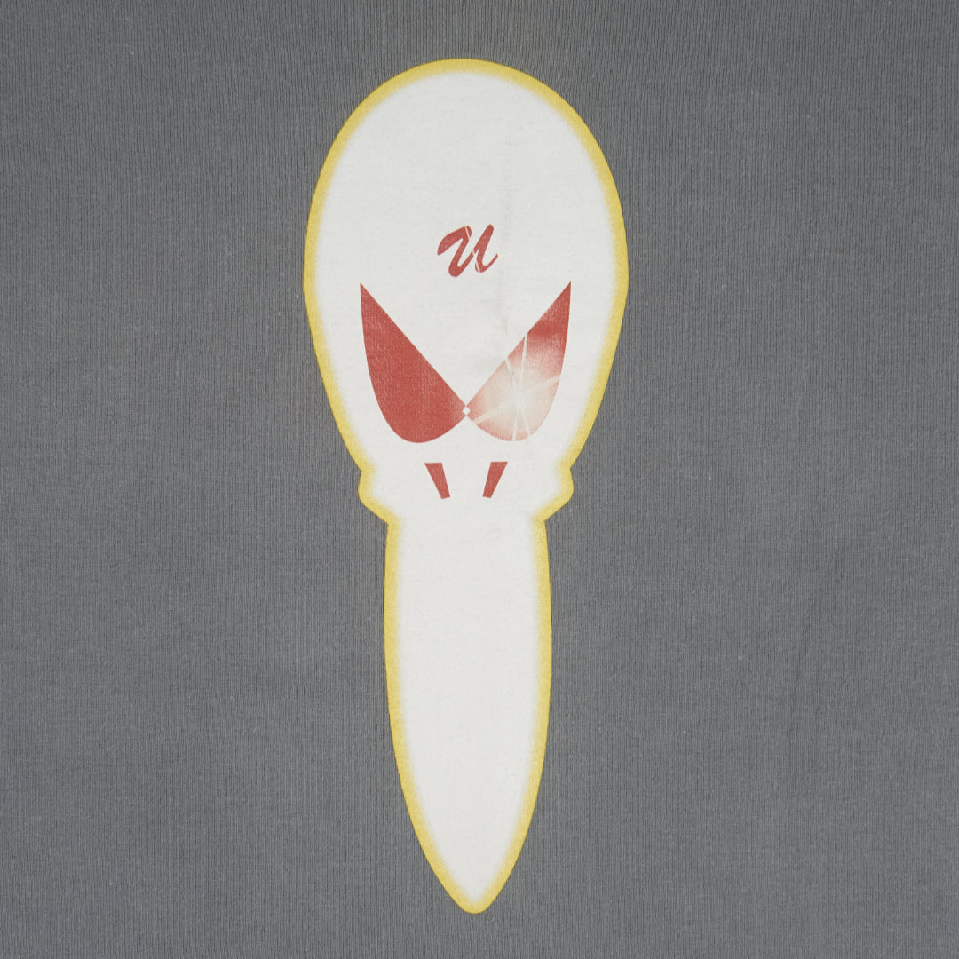 Plague Doctor mask? Pelican's head? Regardless of how you interpret this graphic, one thing's for certain and that's the fact that this is one of the many designs used for Undercover’s Autumn/Winter 2000 ‘Melting Pot’ collection; a collection by Jun Takahashi which pulled from a vast array of references, thus creating a “melting pot” of unique garments and graphics, this one included. Screen-printed atop of high-quality 100% cotton long-sleeve tee, made in Japan, this piece is a part of what many believe to be the “golden age” period of Undercover graphic design.