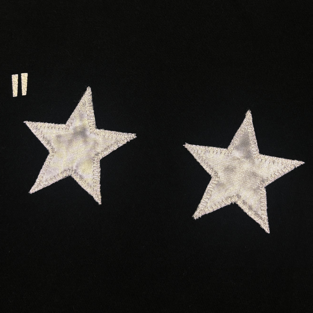 In collaboration with fellow Harajuku brand Fragment Design, this t-shirt from Undercover’s Spring/Summer 2004 ‘LANGUID’ ready-to-wear collection features an “all junk out!!” screen print on the chest and four embroidered stars stitched into the back of the garment.