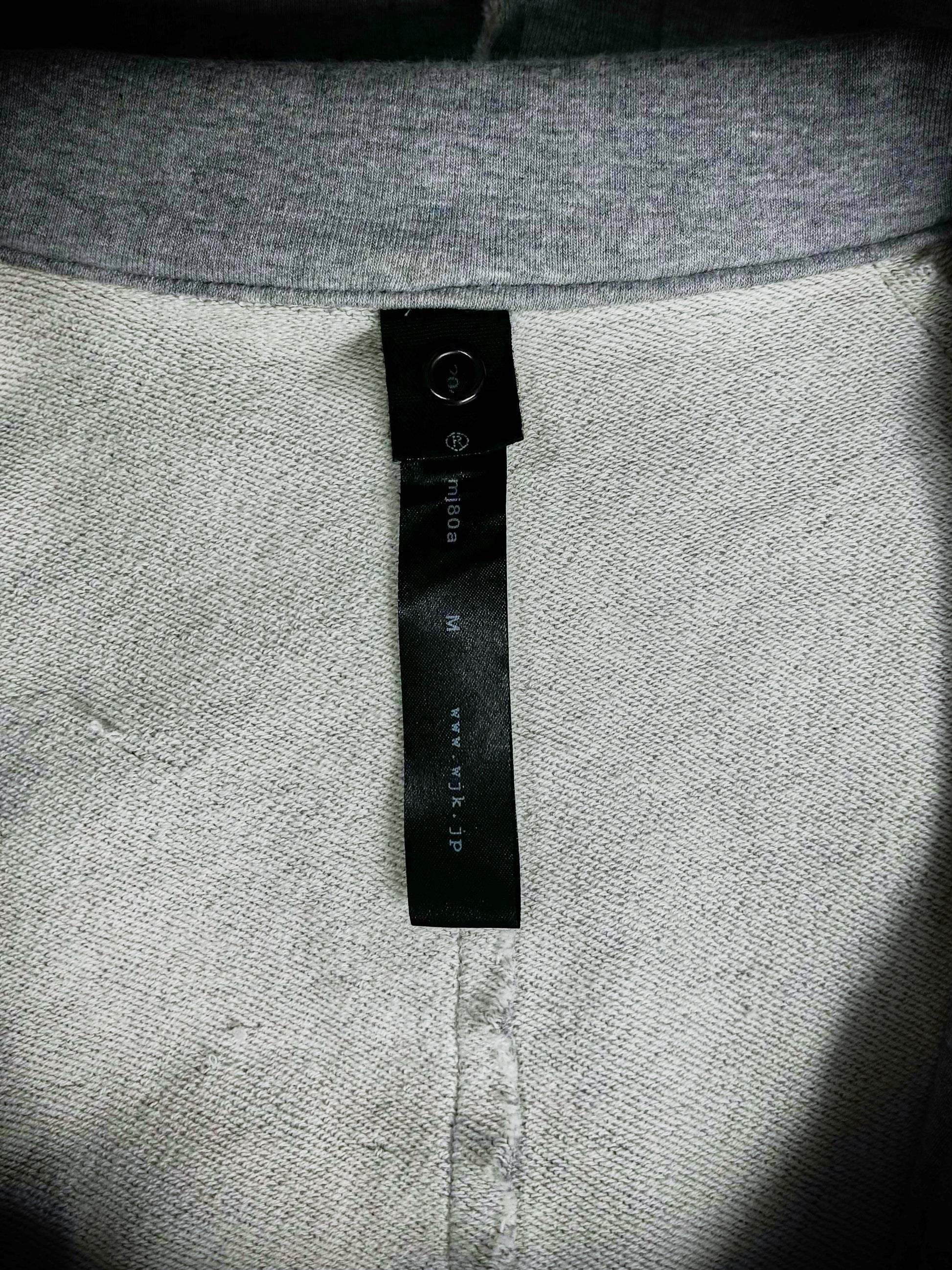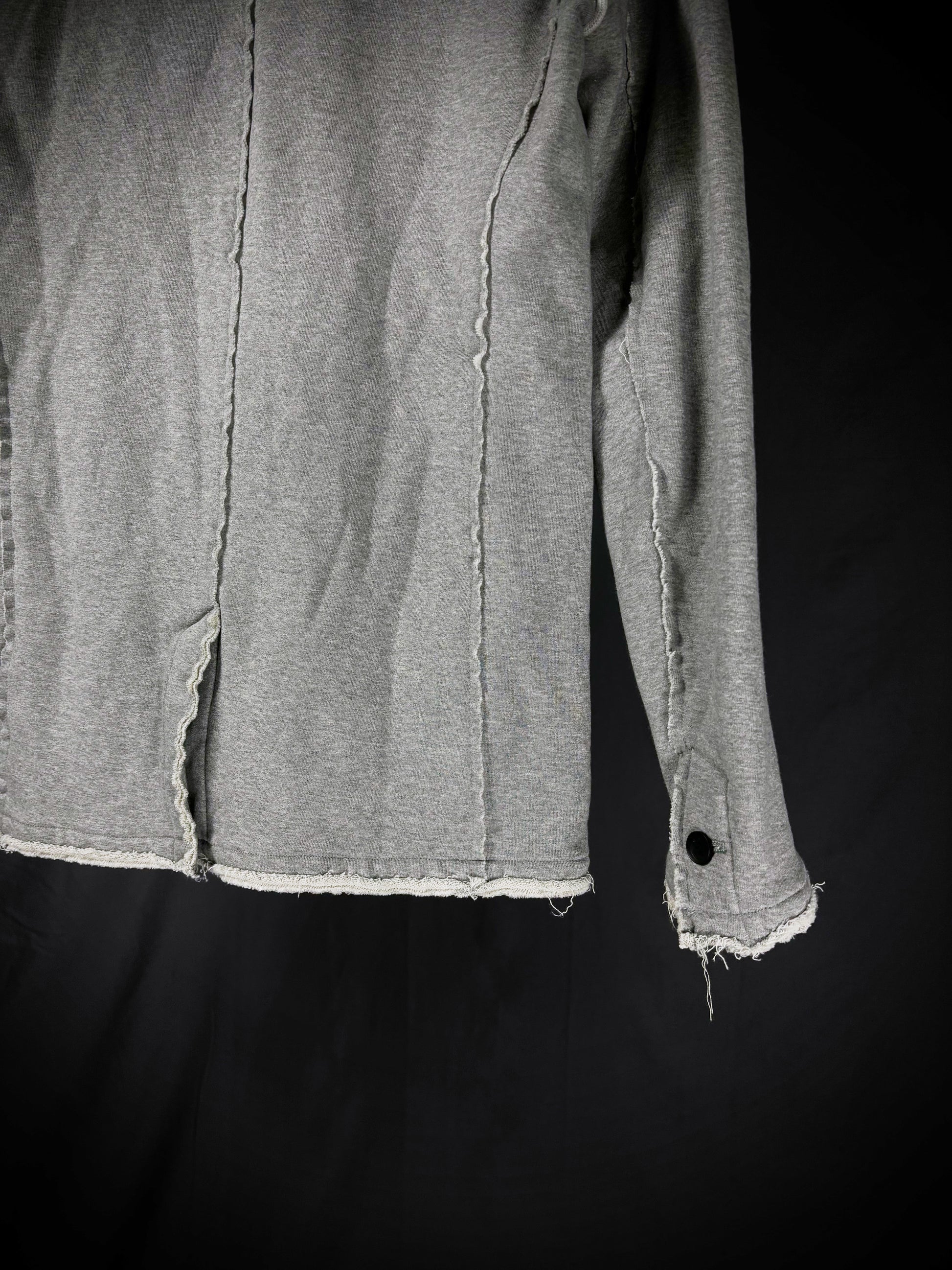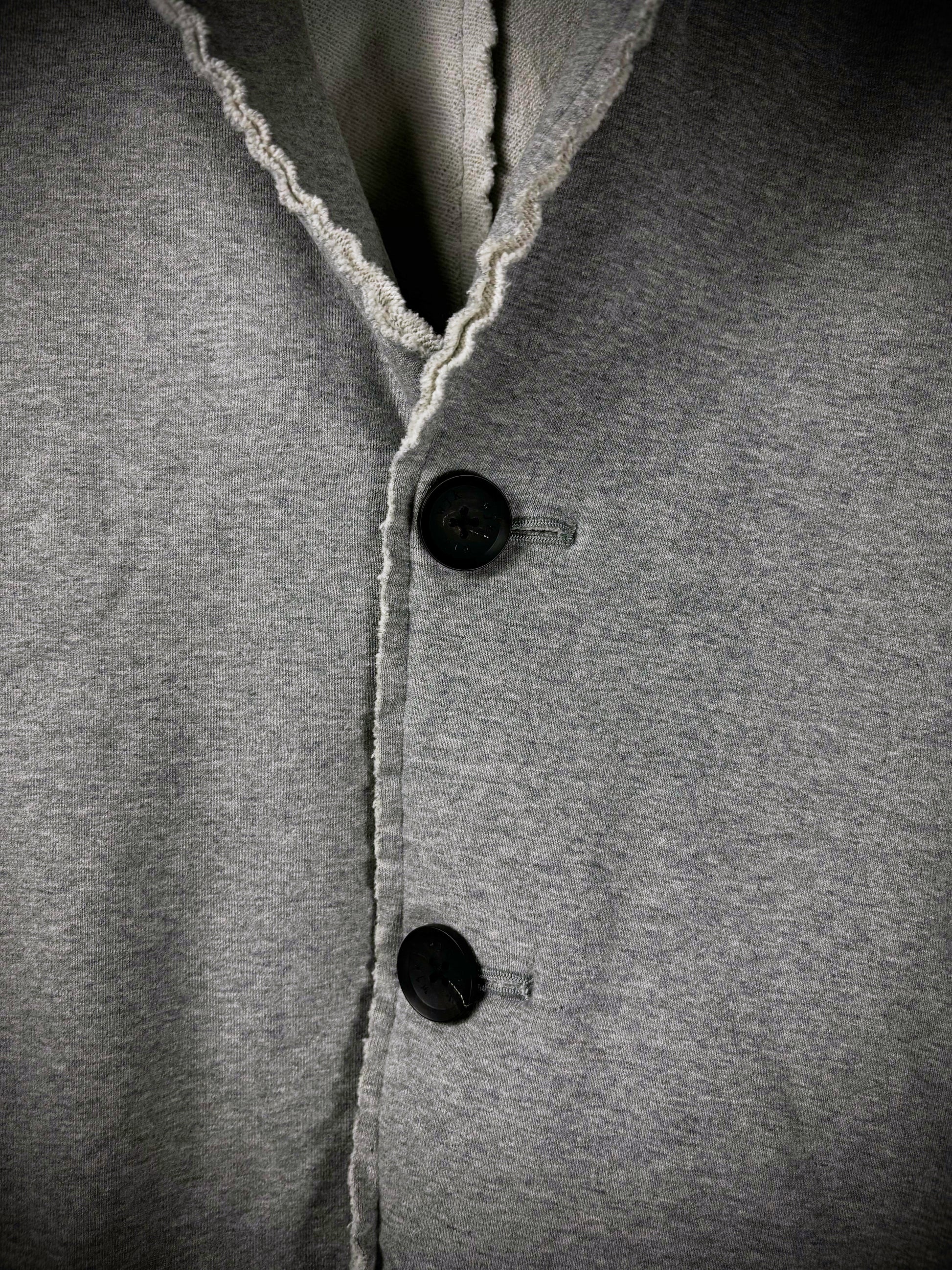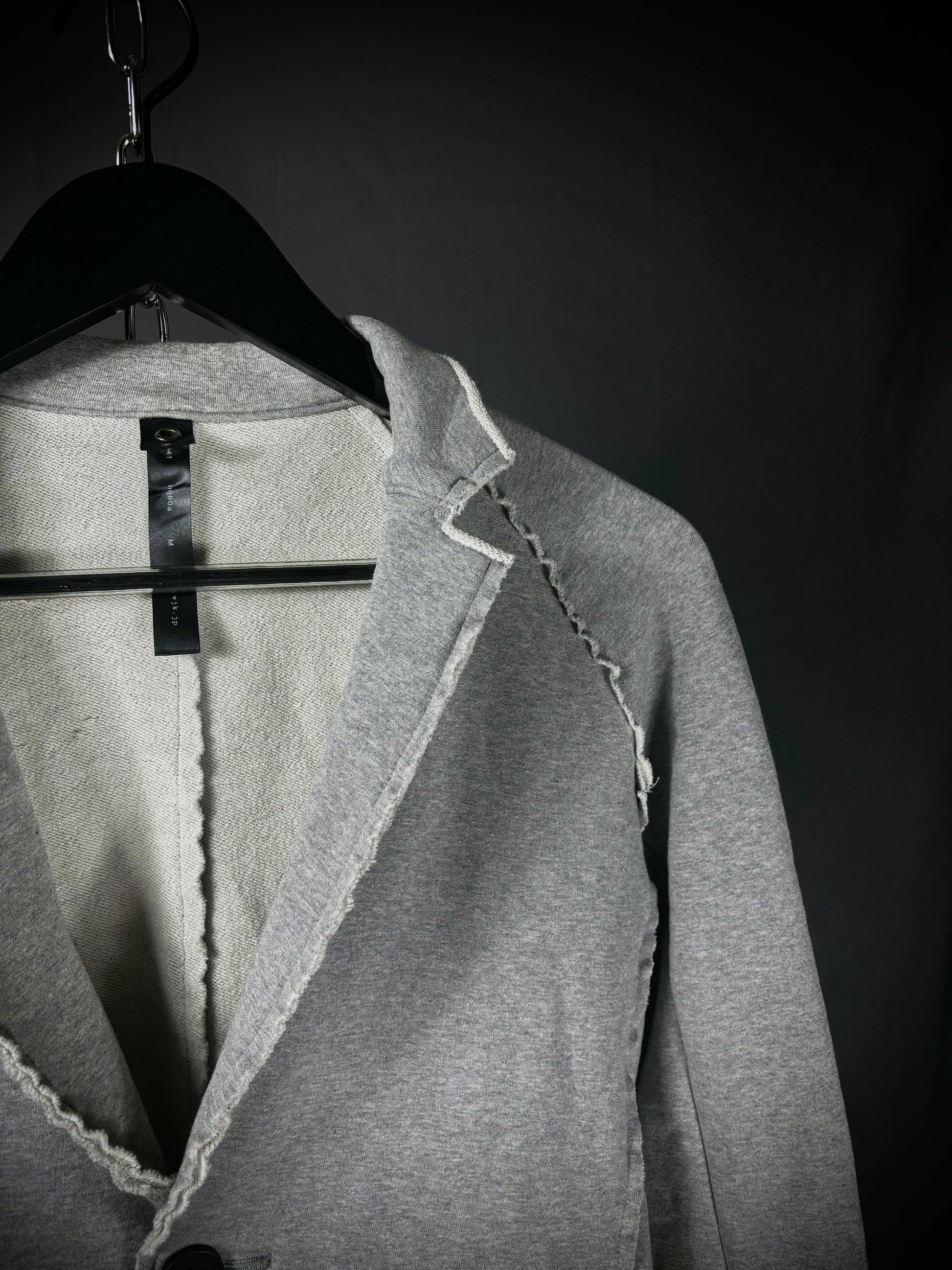 This blazer from the Japanese brand WJK is made from a soft terry fabric blend of cotton, nylon, and polyurethane. It features exposed seams throughout, creating natural distressed accents along the edges and panel lines. Designed with two front pockets, it is finished with button closures and a slim, timeless silhouette. Made in Japan.